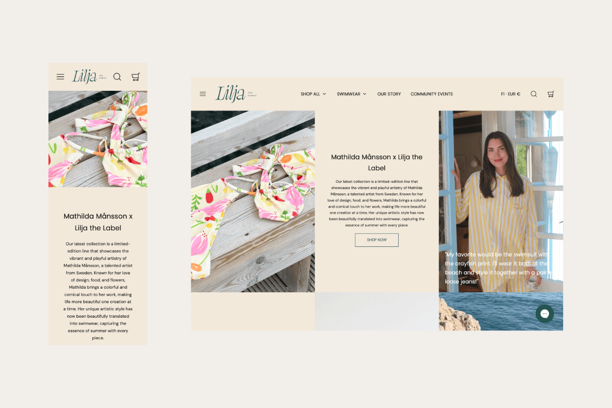Lilja the Label on pohjoismainen uimapukumerkki, jolla on vahva kansainvälinen suunta ja selkeä, minimalistinen muotokieli. Kun brändi laajentui globaalisti ja vahvisti fyysistä myymäläläsnäoloaan, aiempi WooCommerce-pohjainen alusta ei enää vastannut omnichannel-kaupankäynnin ja kansainvälisen skaalautuvuuden vaatimuksia. Tavoitteena oli siirtyä Shopifyyn ja rakentaa yhtenäinen perusta pitkäaikaiselle kasvulle eri kanavilla ja markkinoilla.