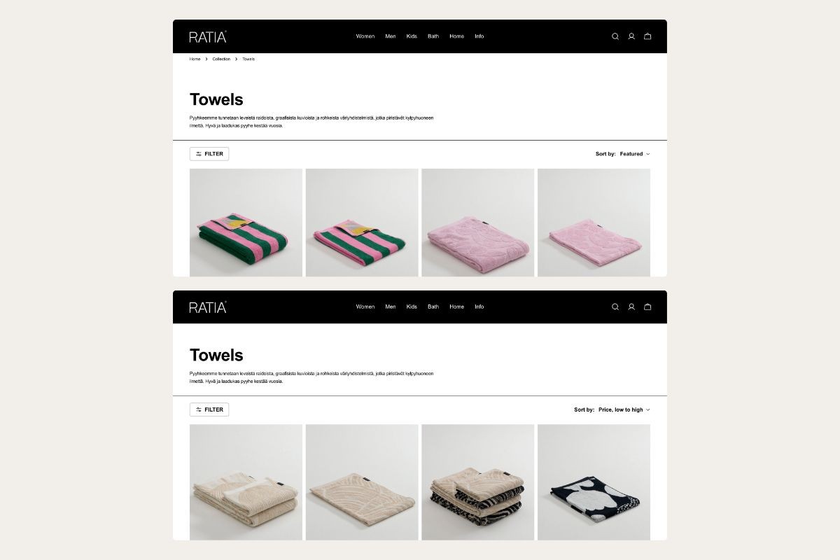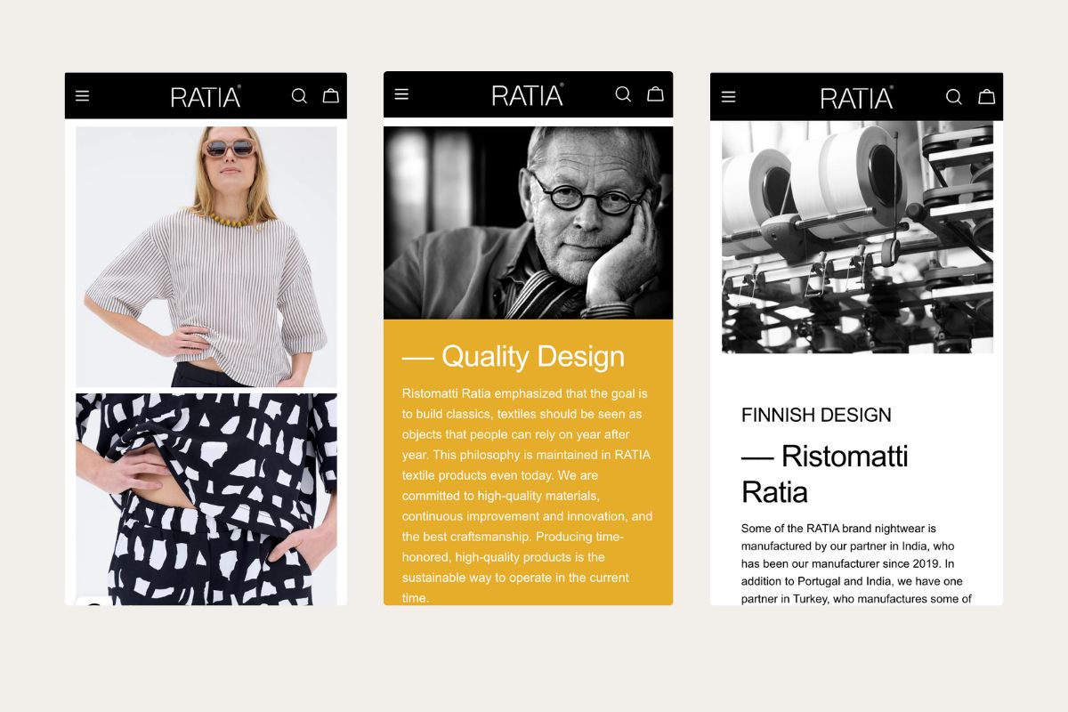 RATIA is an iconic Finnish design brand known for its timeless, functional, and recognizable visual language. With decades of design heritage behind it, the brand’s digital presence needed to reflect the same clarity and confidence as its physical products. The objective was to rebuild RATIA’s online store in a way that honors its design legacy while meeting the expectations of modern ecommerce.