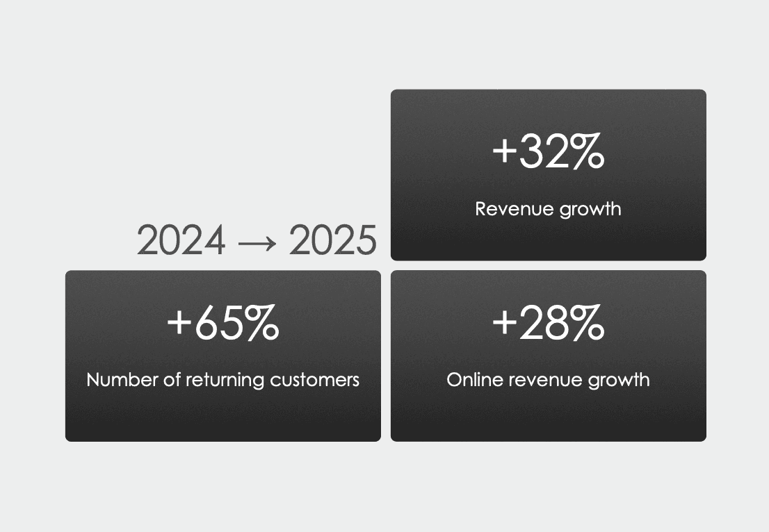 Between 2024 and 2025, Toive achieved 32% total revenue growth, online store revenue grew by 28%, and the number of returning customers increased by 65%. The case demonstrates how combining customer insight with structured, data-led growth execution enables both profitable domestic growth and a solid foundation for international expansion.