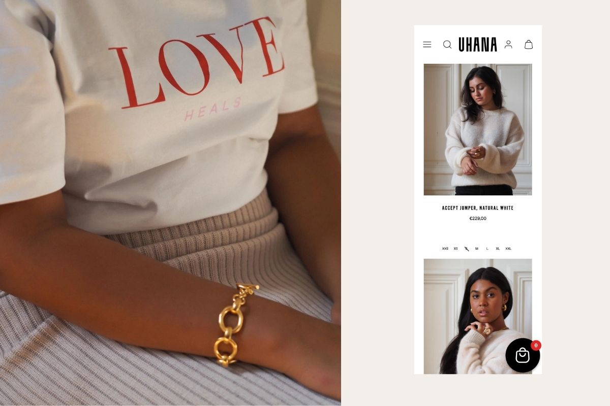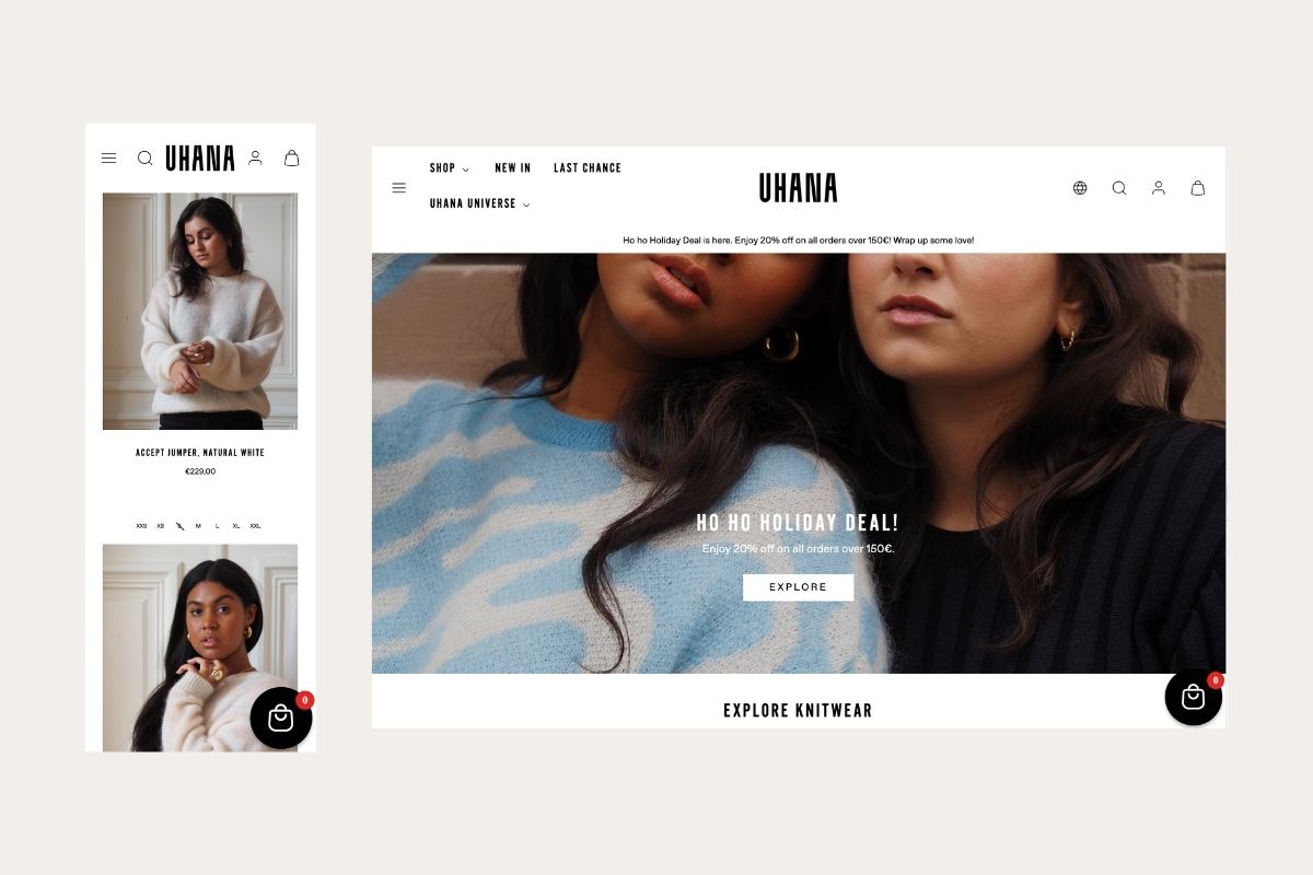 Uhana’s brand experience is built on emotion, surprise, and strong visual storytelling, which placed high demands on the digital channel. The existing setup limited the ability to express the brand’s personality online and constrained flexibility in developing the customer journey. At the same time, the store needed to support smooth purchasing, performance, and everyday usability without diluting the brand’s unique character.