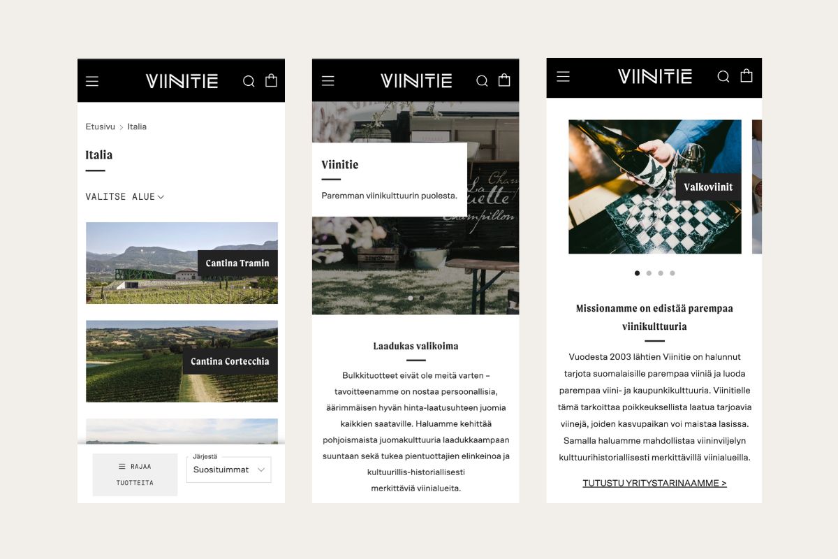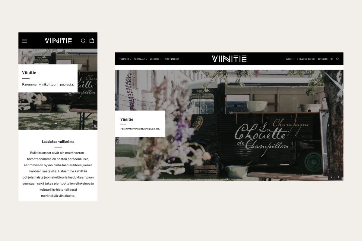 We built Viinitie’s learning platform on Shopify, tailoring the setup to support structured educational content, user access management, and B2B-oriented sales flows. The platform was designed to clearly guide users through learning paths while maintaining a professional and trustworthy brand experience.